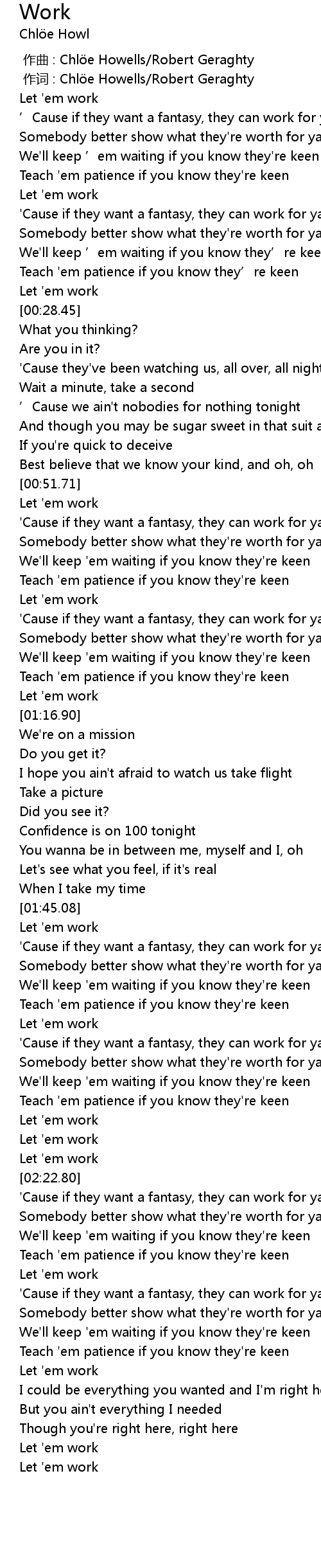 | [00:15.56] | Let 'em work |