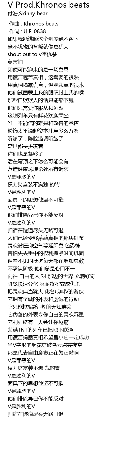 | [01:44.399] | 把灵魂典当犹大 化名成叫V的游侠 |