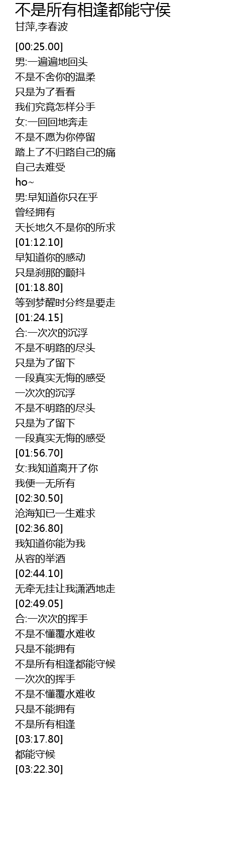 | [03:00.65] | bú shì suǒ yǒu xiāng féng dōu néng shǒu hòu |