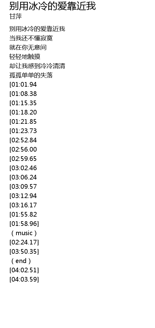 | [02:25.77][01:01.94] | 别用冰冷的眼看着我 |