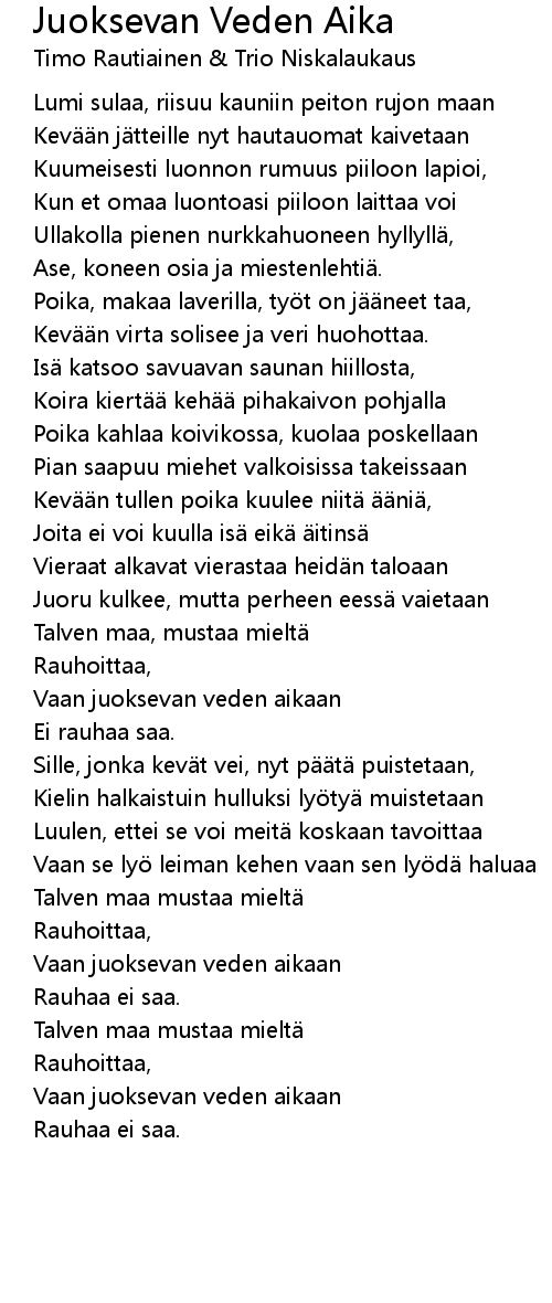 | Lumi sulaa, riisuu kauniin peiton rujon maan | |