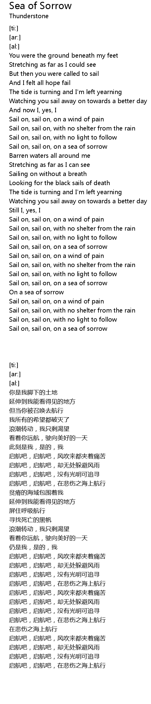 [04:04.42] Sail on, sail on, on a sea of sorrow