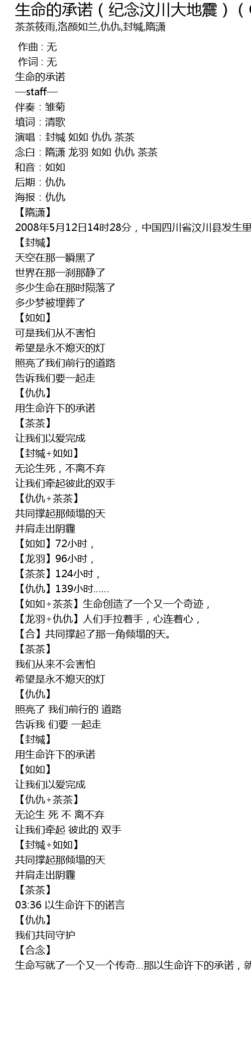 | [03:37.754] | 03: 36 yǐ shēng mìng xǔ xià de nuò yán |