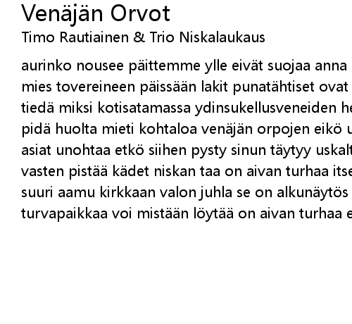 | Song | Venäjän Orvot |