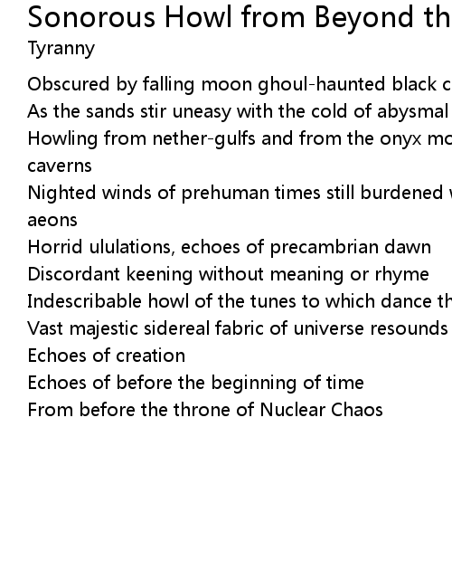 Howling from nether-gulfs and from the onyx monuments of subterranean unholy caverns |