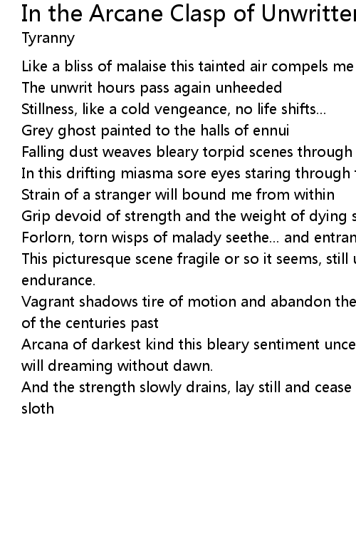 And the strength slowly drains, lay still and cease in the strenuous grasp of sloth |