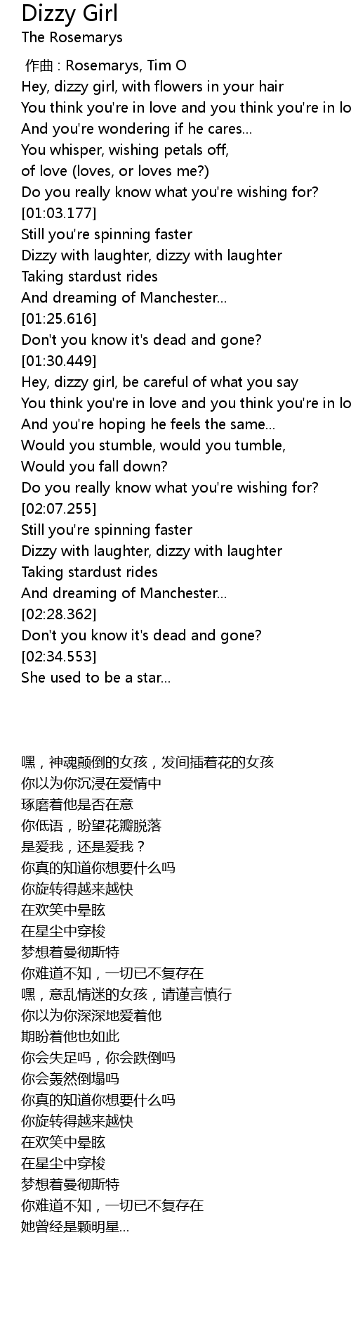 | [00:28.591] | Hey, dizzy girl, with flowers in your hair |