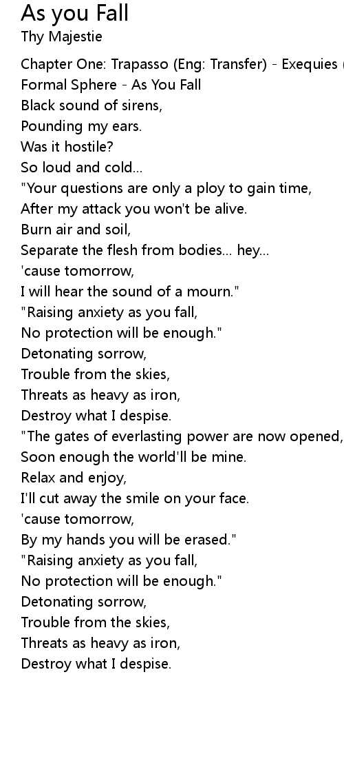 Chapter One: Trapasso (Eng: Transfer) - Exequies (Funeral Ceremonies) Of The Formal Sphere - As You Fall |