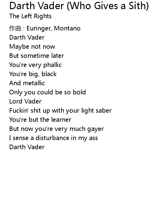 | Song | Darth Vader (Who Gives a Sith) |