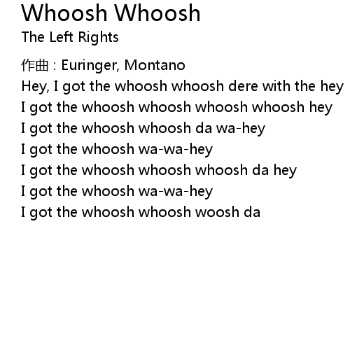 | I got the whoosh whoosh whoosh whoosh hey | |
