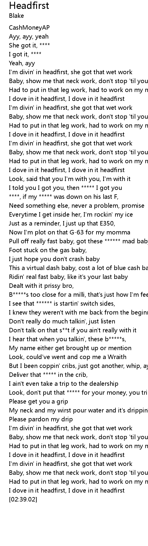 Baby, show me that neck work, don't stop 'til your head hurt |