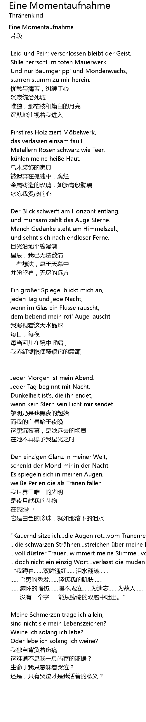 | " Kauernd sitze ich... die Augen rot... vom Tr nenreigen... | |