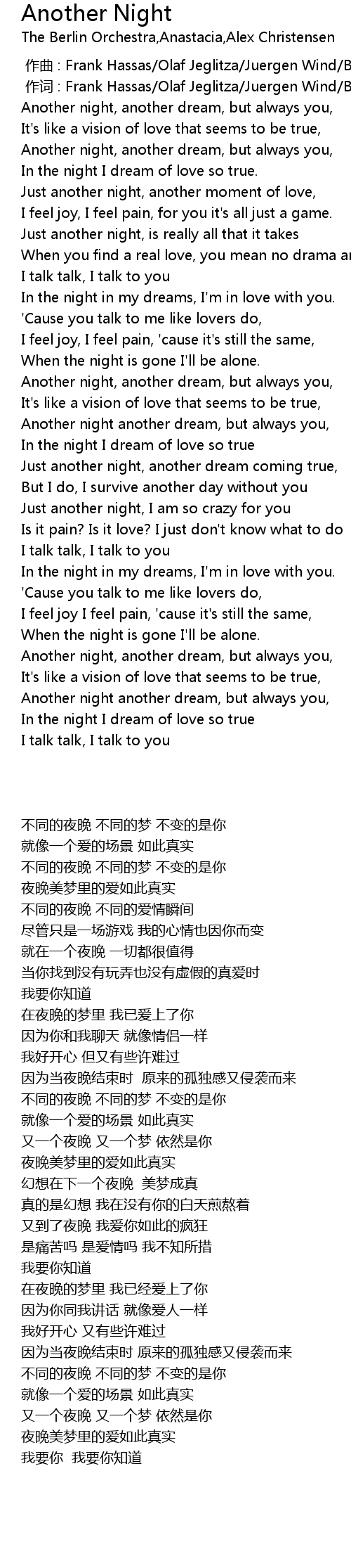 | Song | Another Night |