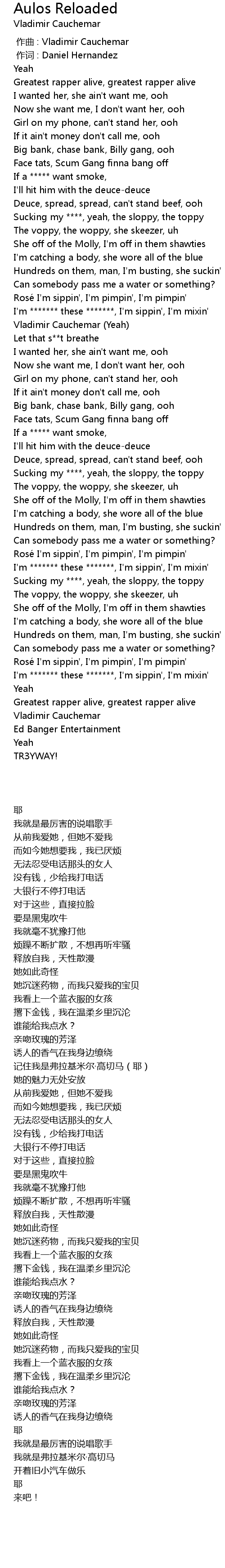 | [00:00.000] | 作曲 : Vladimir Cauchemar |