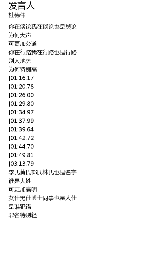 | [02:54.98][01:34.97] | 难道谁有权说话 |