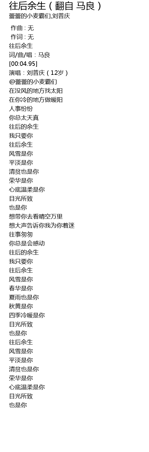 | [00:06.01] | 演唱:刘普庆(12岁) |