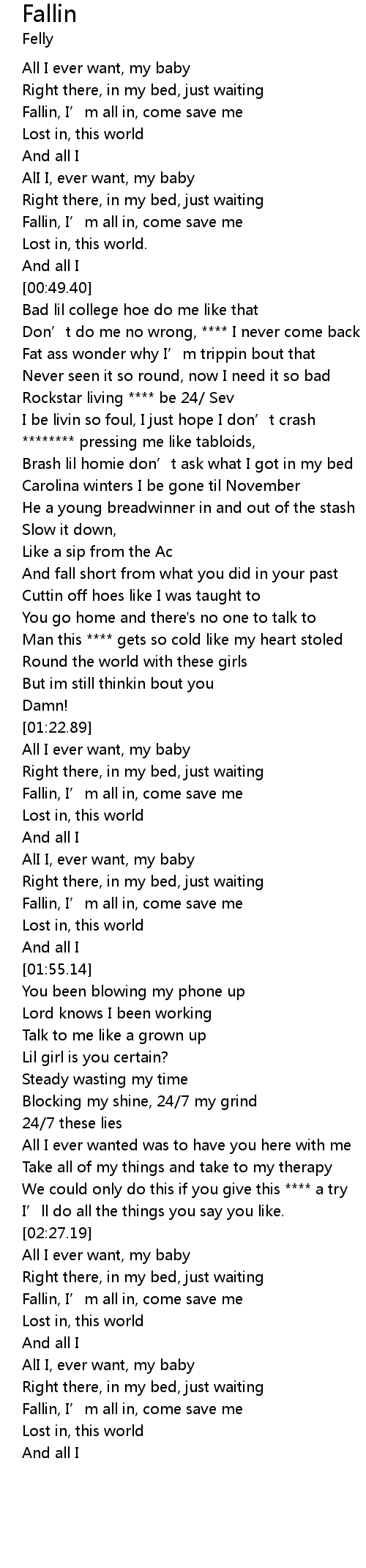 | [00:24.91] | Fallin, I' m all in, come save me |