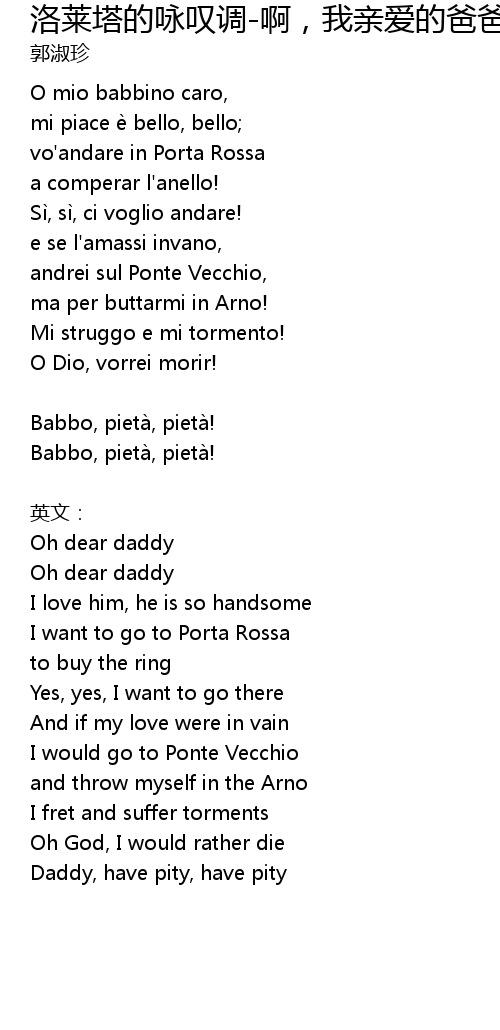| Song | 洛莱塔的咏叹调-啊,我亲爱的爸爸 |