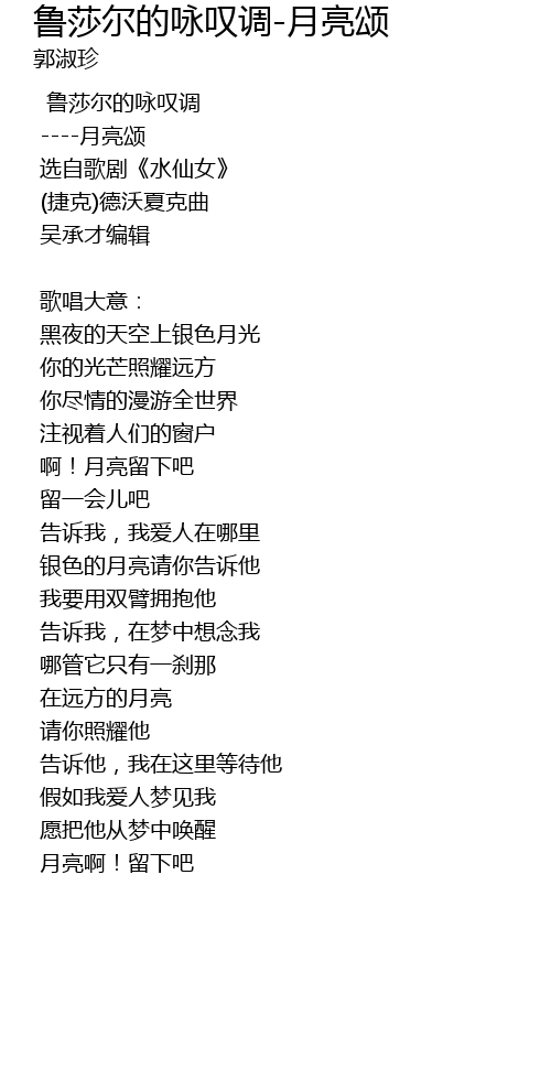 | Song | 鲁莎尔的咏叹调-月亮颂 |