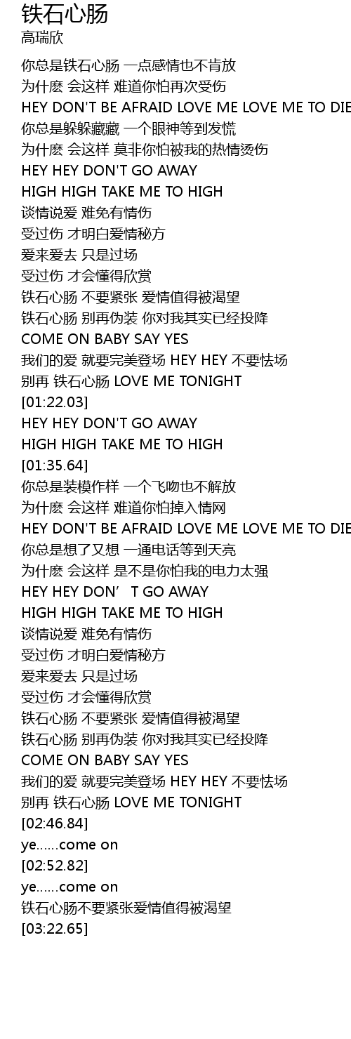 | [00:59.65] | tiě shí xīn cháng bú yào jǐn zhāng ài qíng zhí de bèi kě wàng |