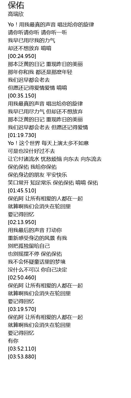 | [01:33.830] | bǎo yòu bǎo yòu wǒ gěi nǐ bǎo yòu |
