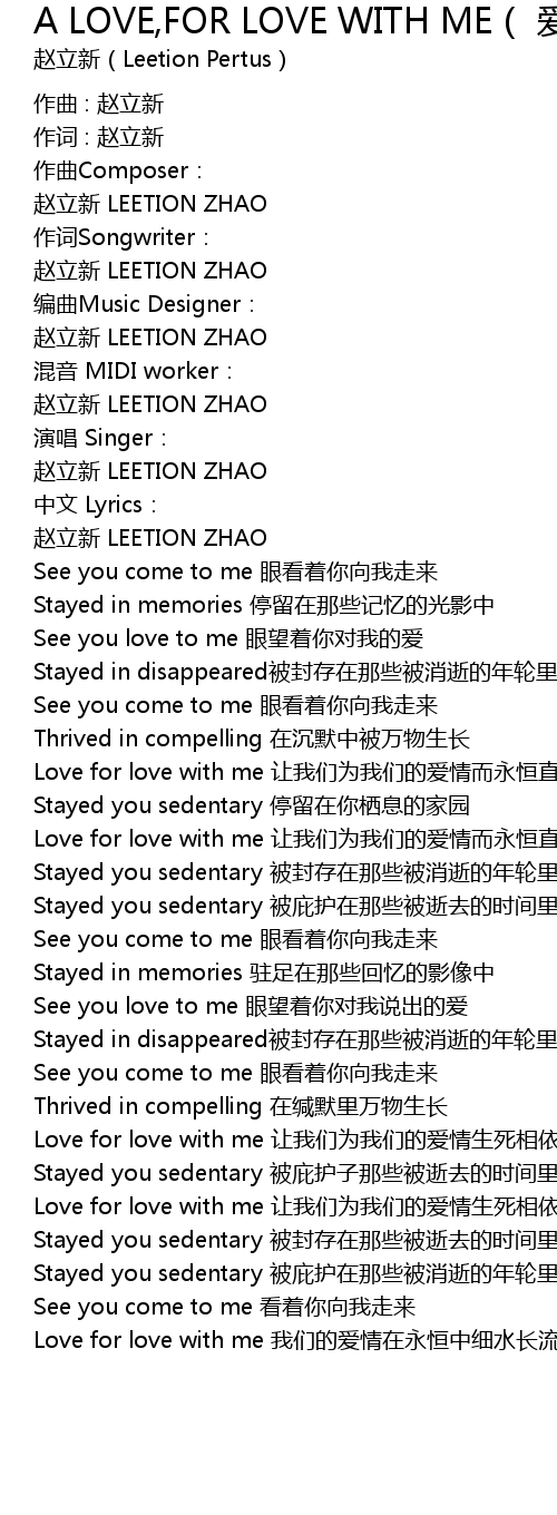 | [2:56] | Love for love with me 我们的爱情在永恒中细水长流 |