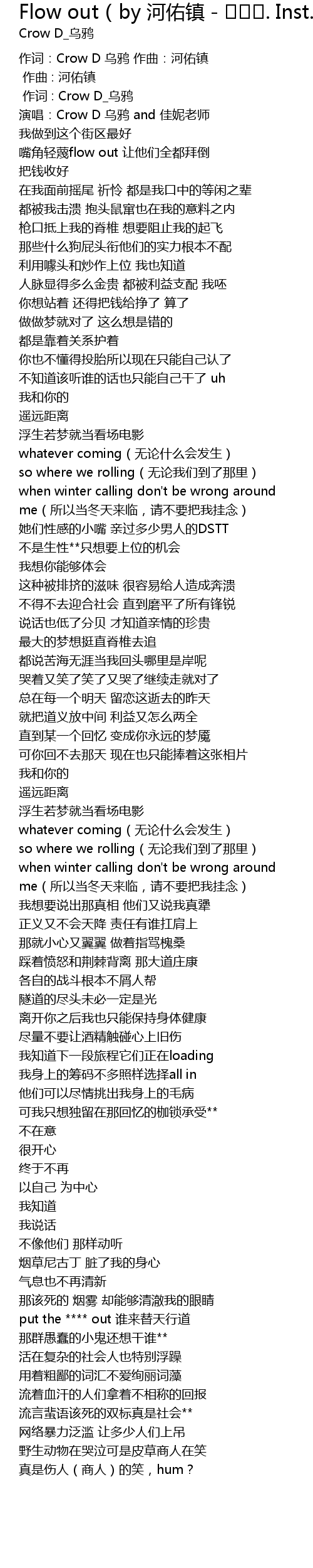 | [00:01.000] | 作词 : Crow D_乌鸦 |
