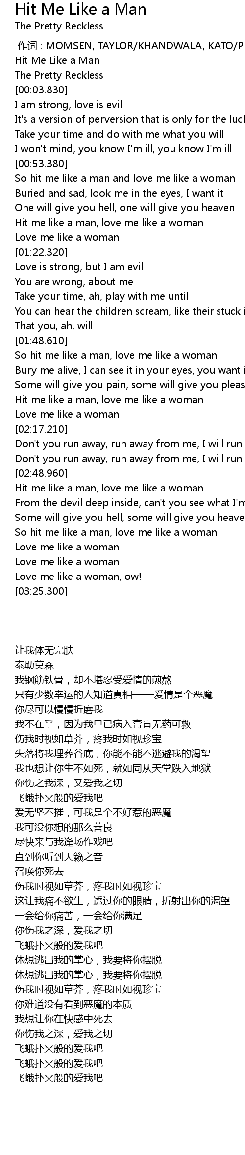 | [02:49.360] | Hit me like a man, love me like a woman |