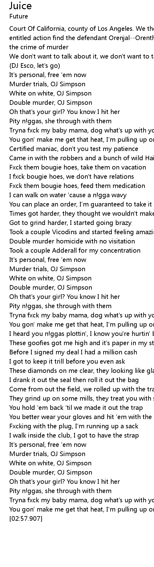 Court Of California, county of Los Angeles. We the jury in the above entitled action find the defendant Orenjal--Orenthal James Simpson not guilty of the crime of murder |