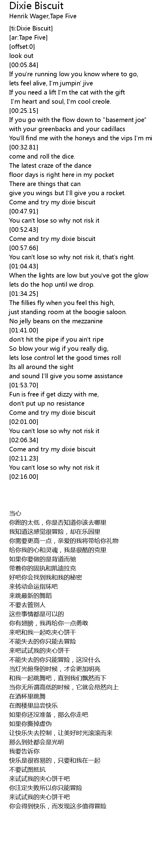 [ti:Dixie Biscuit] |