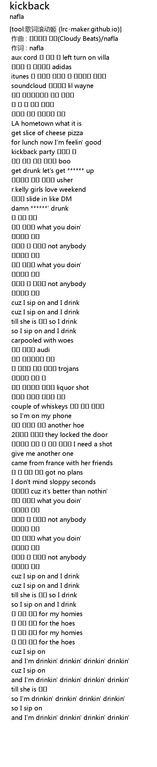 | [02:53.954] | so I' m drinkin' drinkin' drinkin' drinkin' |
