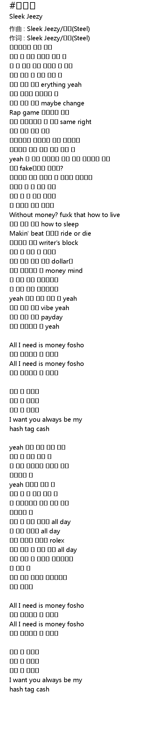 作词 : Sleek Jeezy/스틸(Steel)