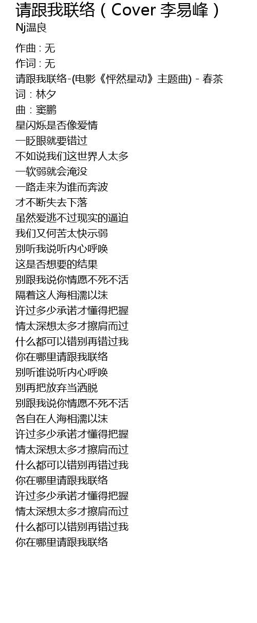 | nǐ zài nǎ lǐ qǐng gēn wǒ lián luò |