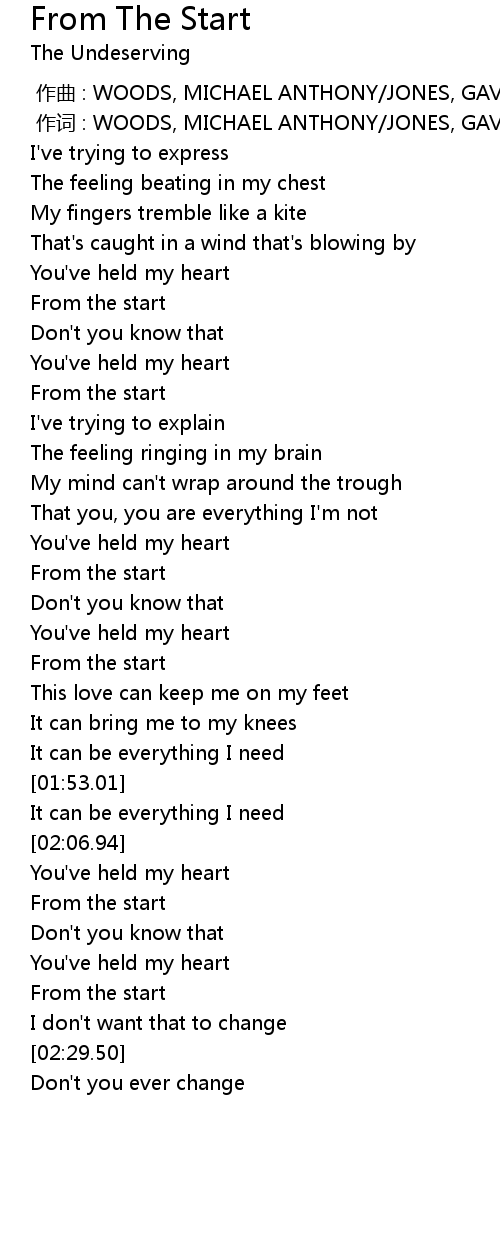 | [00:01.00] | 作词 : WOODS, MICHAEL ANTHONY/JONES, GAVIN |
