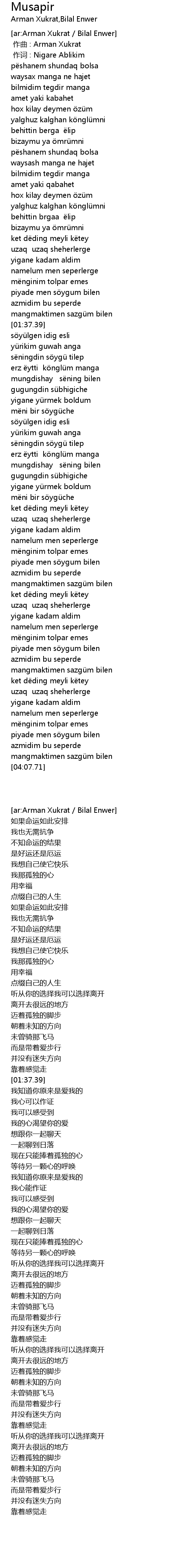 | [00:00.000] | 作曲 : Arman Xukrat |