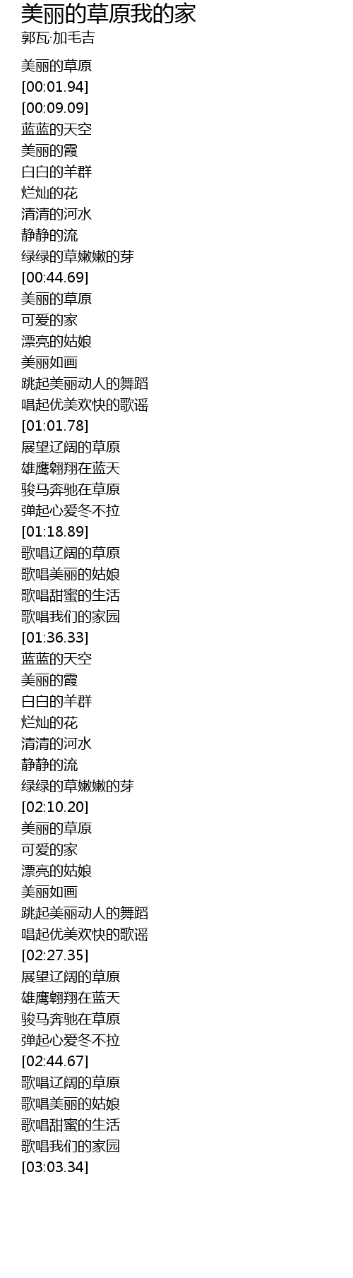 | [02:10.68] | 美丽的草原 |
