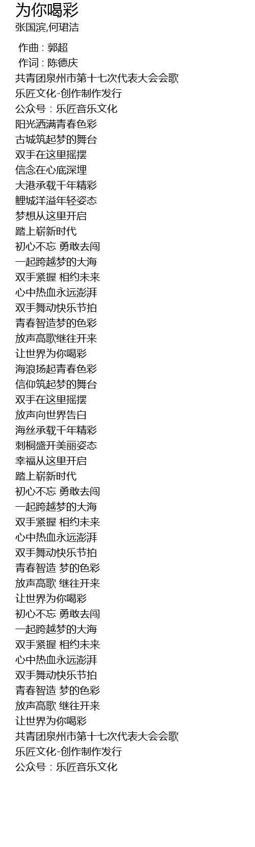 | [00:09.439] | 共青团泉州市第十七次代表大会会歌 |