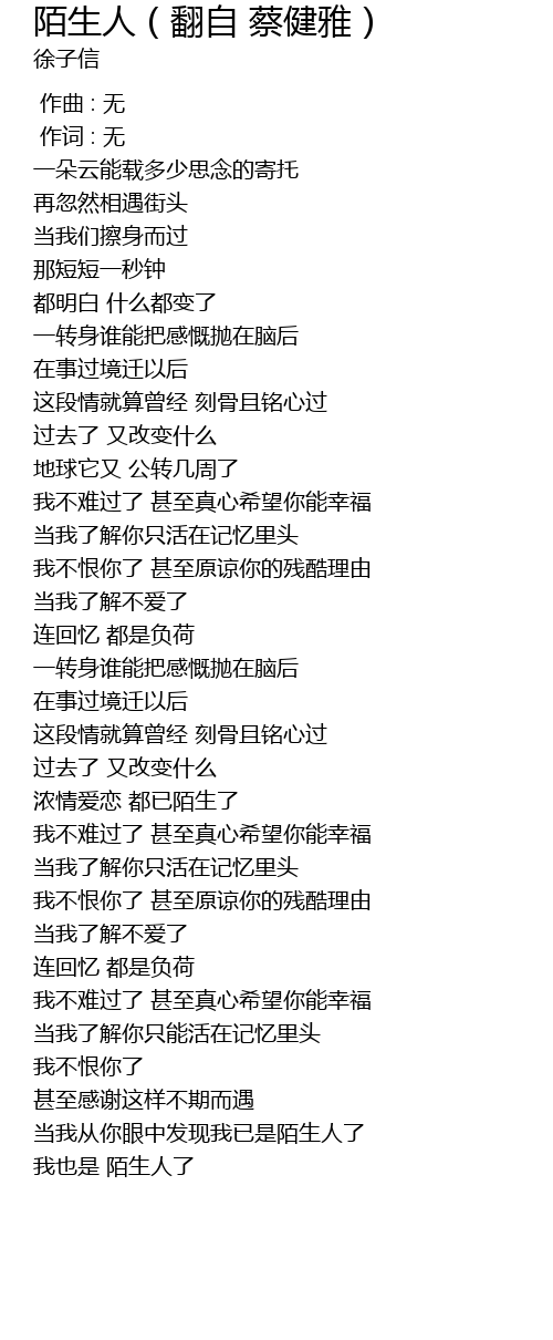 | [03:34.309] | 我也是 陌生人了 |