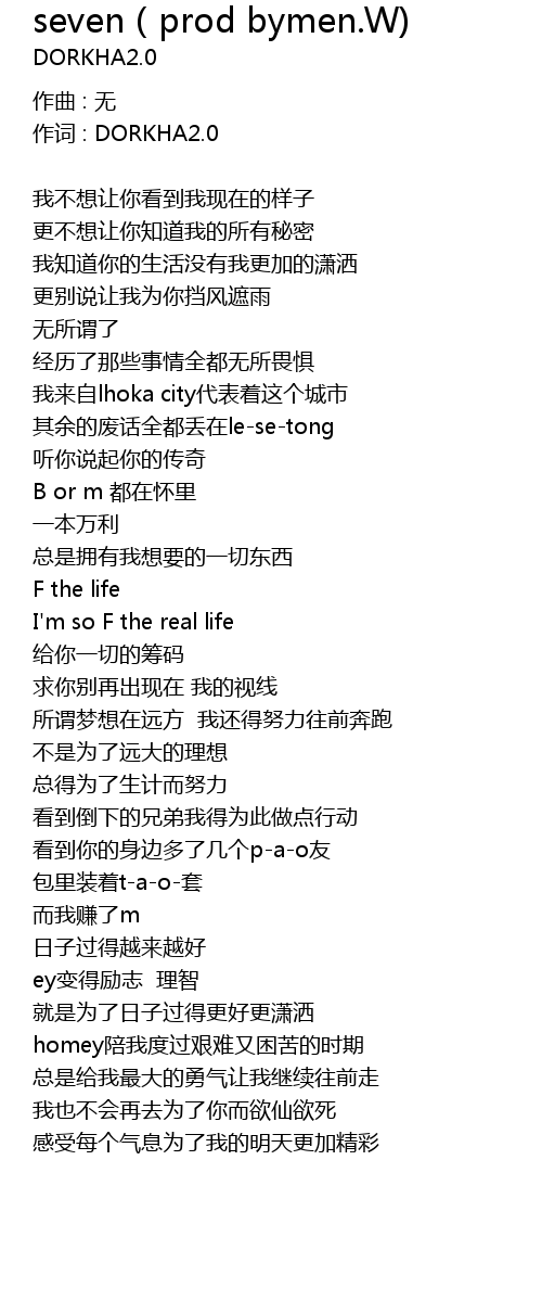 | 作词 : DORKHA2.0 | |
