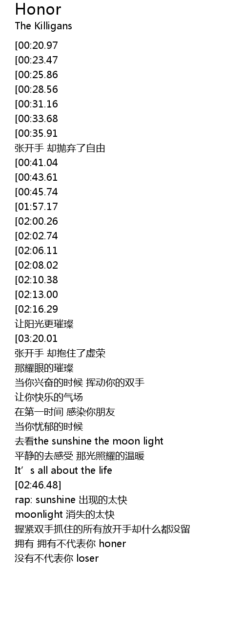 | [02:31.06] | 去看the sunshine the moon light |