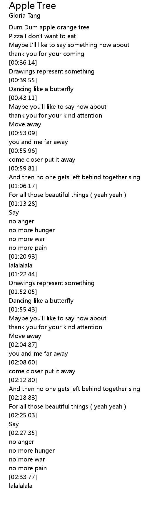 | [00:22.31] | Dum Dum apple orange tree |