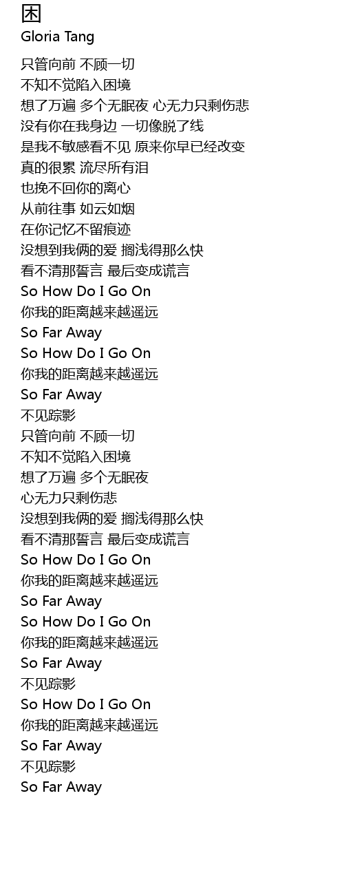 | Song | 困 |
