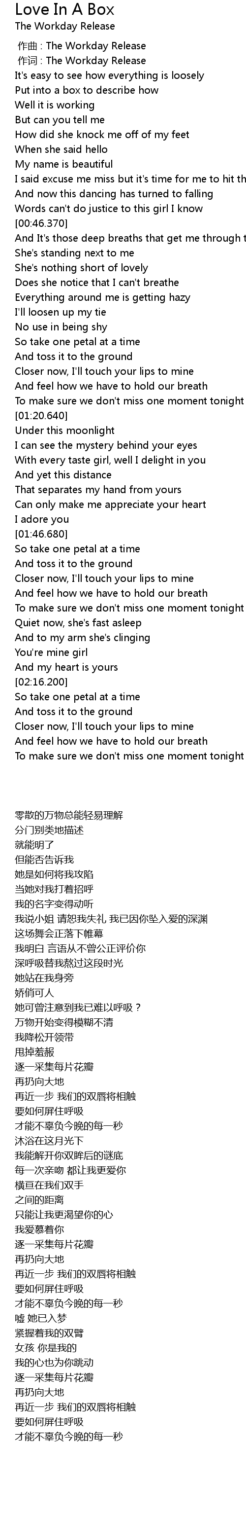| [00:01.00] | 作词 : The Workday Release |