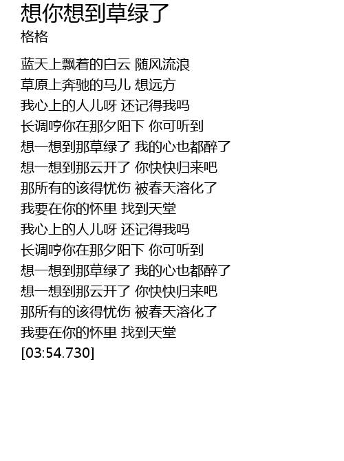 | [03:02.170] | 想一想到那草绿了 我的心也都醉了 |