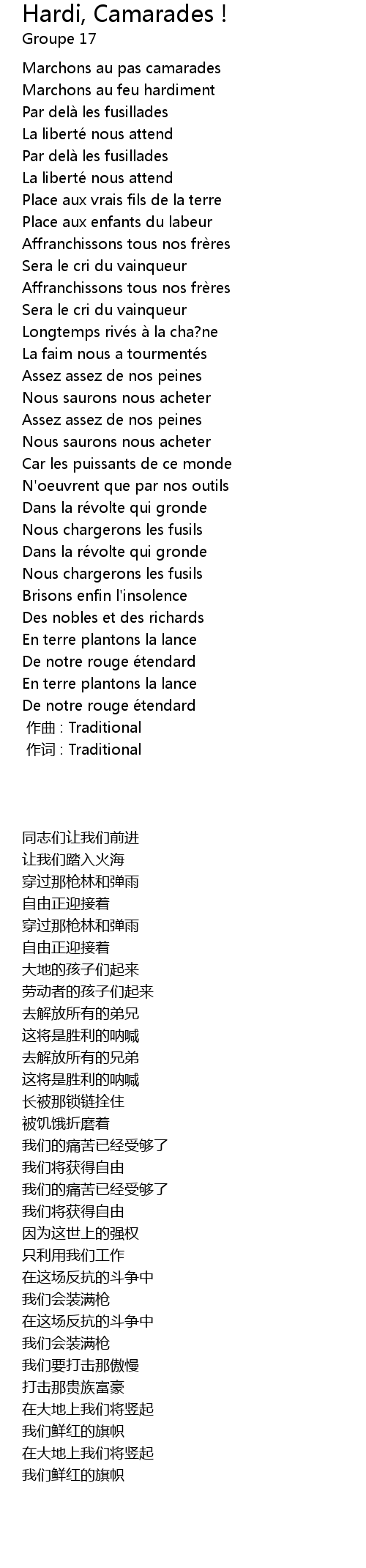 | Song | Hardi, Camarades ! |