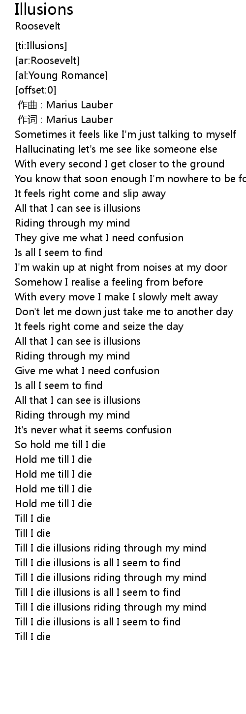 | [04:01.20] | Till I die illusions is all I seem to find |