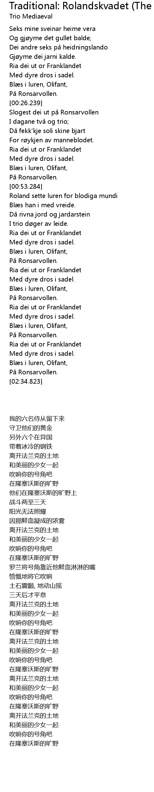 | Song | Traditional: Rolandskvadet (The Song Of Roland) |