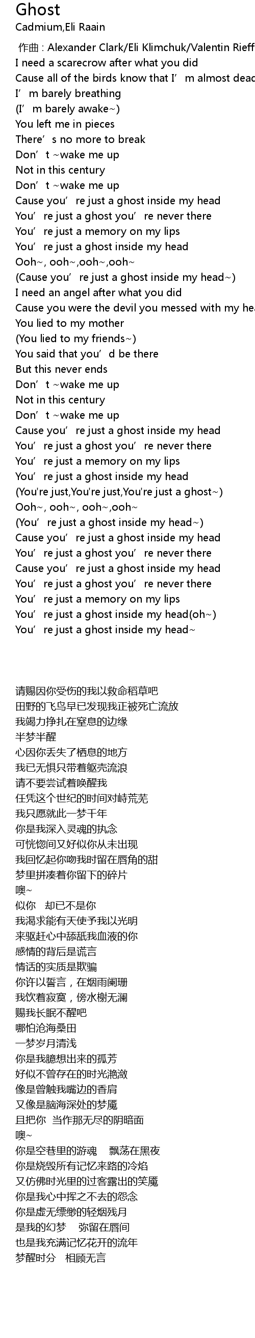 | [03:31.590] | You' re just a ghost inside my head oh |
