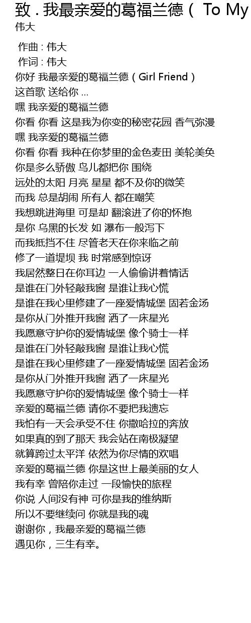 | [01:32.88] | 亲爱的葛福兰德 你是这世上最美丽的女人 |