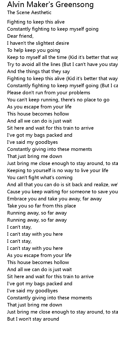 Constantly fighting to keep myself going (But I can't have you stay) |